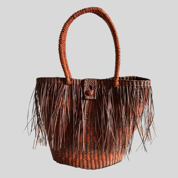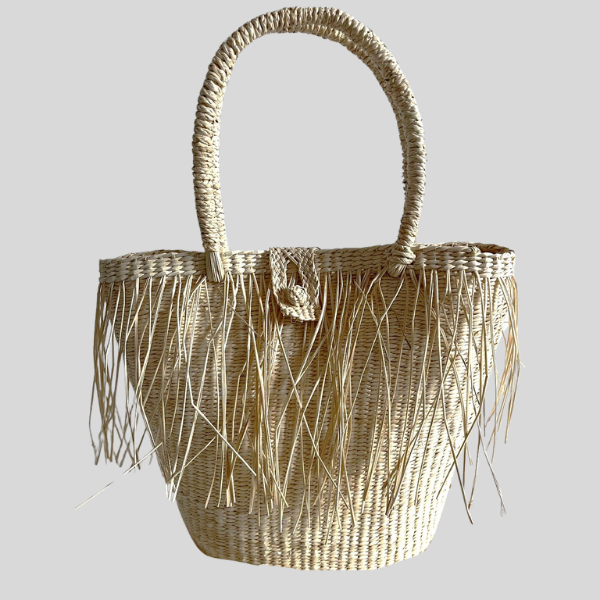 Capazo boho con flecos, al elegirlo estás apoyando la producción ética y el saber hacer de comunidades artesanas que trabajan con materiales locales y técnicas transmitidas de generación en generación. Cada pieza cuenta una historia y es diferente a las demás, con pequeñas variaciones que la hacen especial.