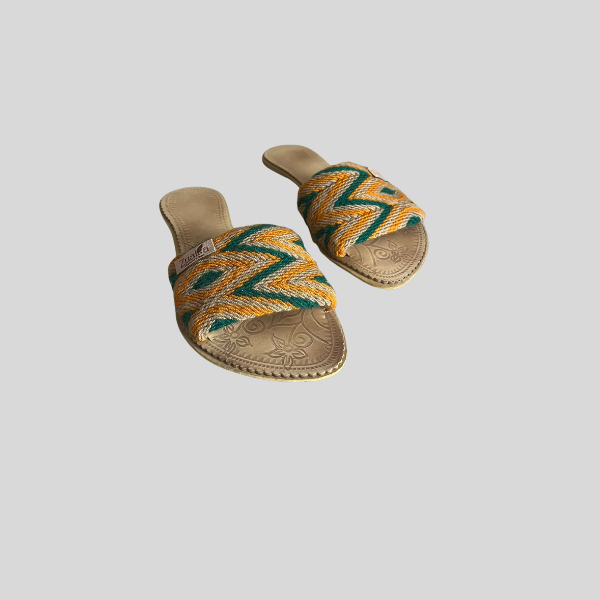 Estas sandalias artesanales son el equilibrio perfecto entre comodidad, estilo y tradición. Hechas completamente a mano, combinan materiales naturales y un diseño vibrante que las convierte en el complemento ideal para los días soleados. Cada par está elaborado con tejido de algodón suave, cuidadosamente trenzado por artesanas expertas, y se asienta sobre una resistente suela de cuero, lo que garantiza durabilidad y confort en cada paso.