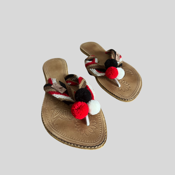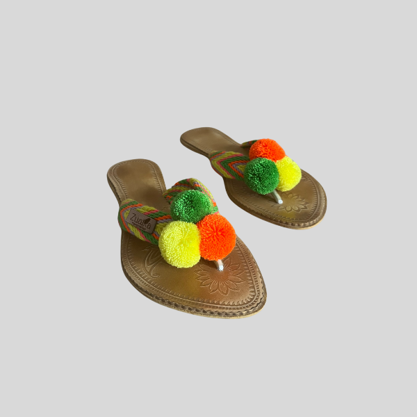 Disponibles en dos versiones —con caja normal o modelo de dedo—, ambas incluyen adorables pompones que aportan un toque bohemio y alegre, característico del espíritu libre de nuestra colección. Los colores mezclados en cada diseño hacen que ninguna sandalia sea igual a otra: cada par es único, lleno de personalidad y color. Desde tonos cálidos hasta combinaciones más frescas, estas sandalias se adaptan a todo tipo de looks, desde los más relajados hasta los más creativos.